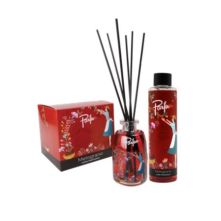 The pomegranate also appears on ancient Jewish coins as a sacred symbol. Its sweet and fruity aroma recalls the taste of pomegranate seeds crushed between the teeth. A stylish diffuser with black reeds will fit perfectly into any interior and fill the space with the aroma of your pleasure.